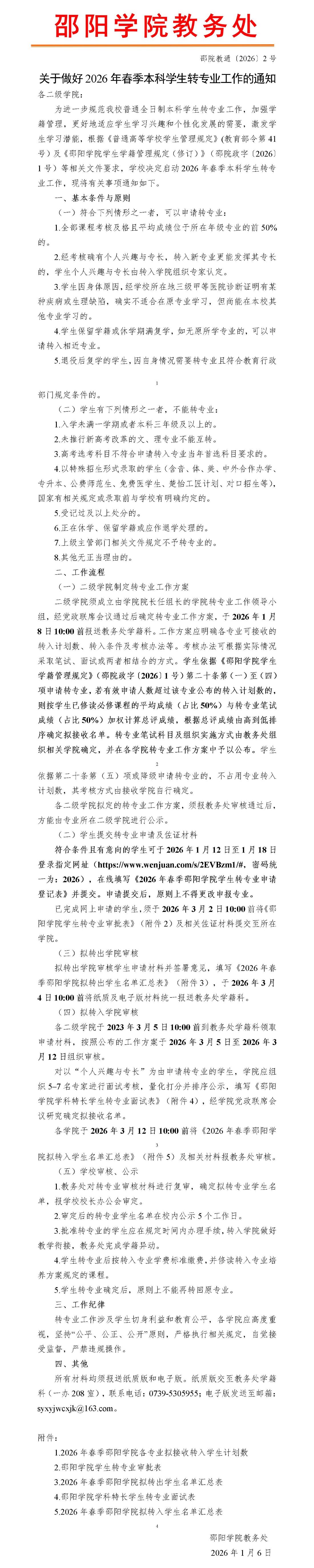 关于做好2026年春季本科学生转专业工作的通知(邵院教通〔2026〕2号 )