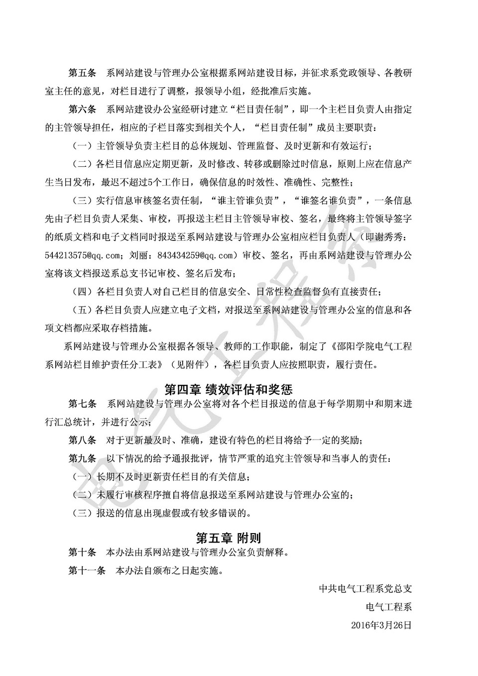 电气工程系网站运行管理办法