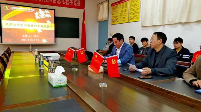 时间:2021-12-07 2021年12月7日下午在电气工程学院会议室,教育部“长江学者”特聘教授、上海交通大学深圳研究院执行院长、上海交通大学博士生导师刘河洲教授为我院师生作了一场题为“能量转换.智能复合材料”的学术报告。电气工程学院班子成员、学科带头人、方向带头人以及20余名硕士研究生、本科生代表参会,报告由电气工程学院林立副院长主持。