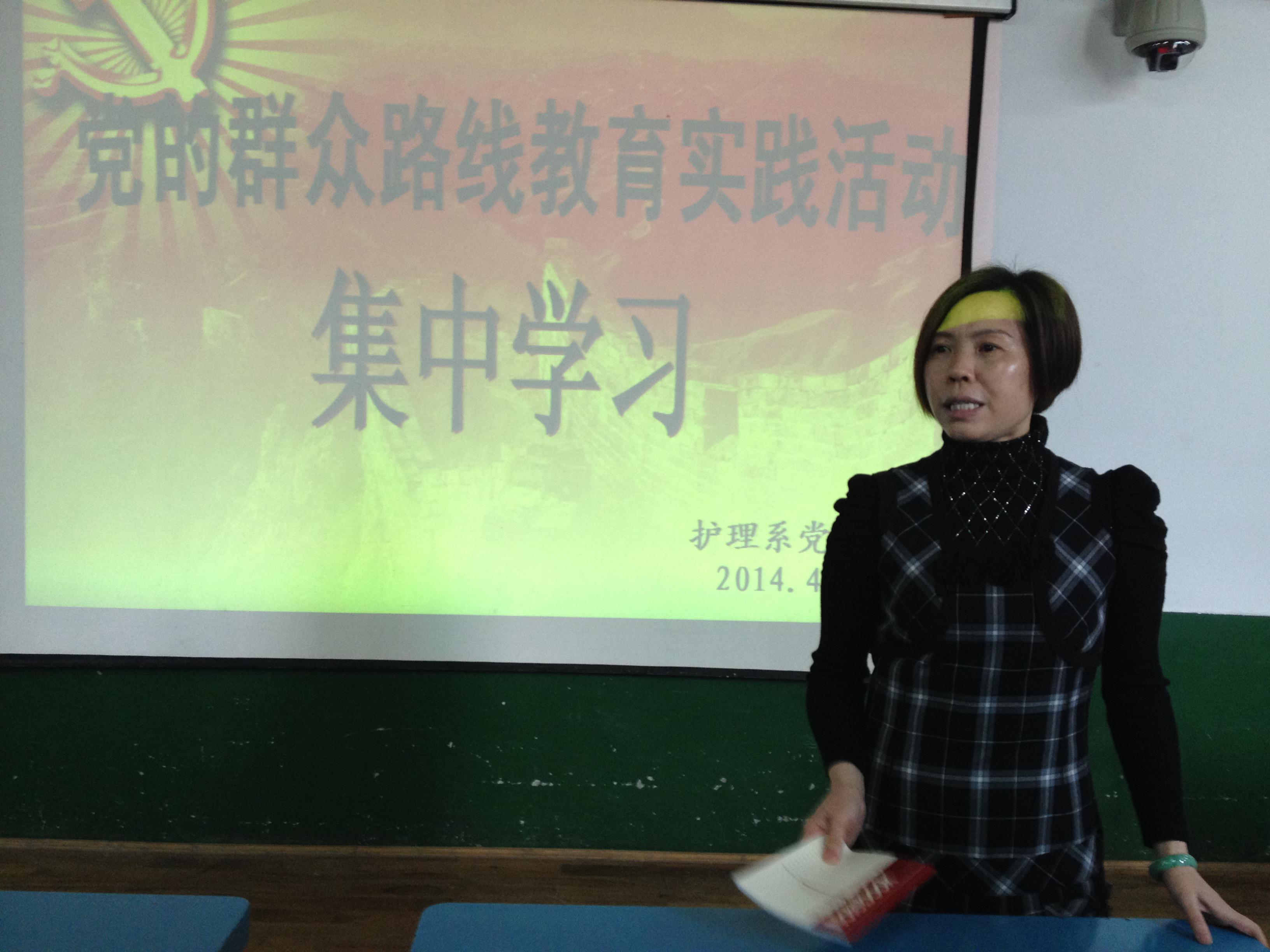 动员大会后,系党总支组织全体党员学习了《论群众路线-重要论述摘编》、《习近平在党的群众路线教育实践活动第一批总结暨第二批部署会议上发表的重要讲话》等内容。邓书记强调,护理系党总支每位党员同志都必须深入扎实学习有关开展党的群众路线教育实践活动的相关文件与精神。全体党员老师表示要做到边学习边记录,确保学深学透,以强烈的责任感和使命感,扎扎实实开展好教育实践活动。