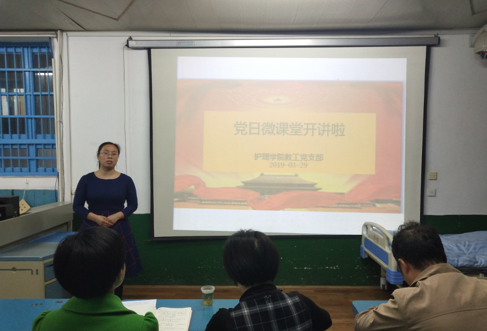 3月29日下午,护理学院党总支组织各党支部开展以“学深悟透,践行习近平新时代中国特色社会主义思想”为主题的党日微课堂活动。活动由各支部书记主持,通过支部书记上党课和学习讨论等形式开展。