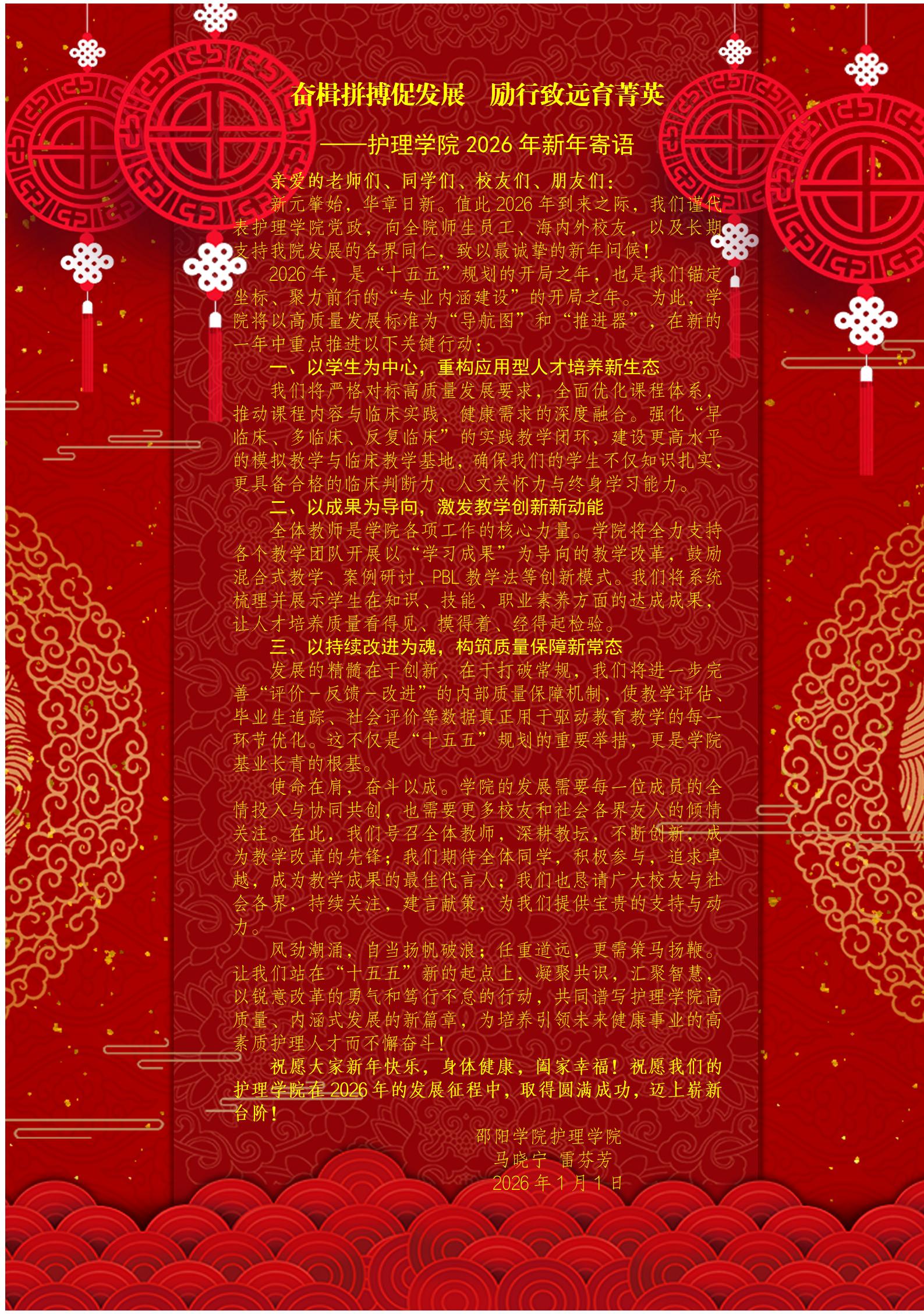 护理学院2026年新年寄语