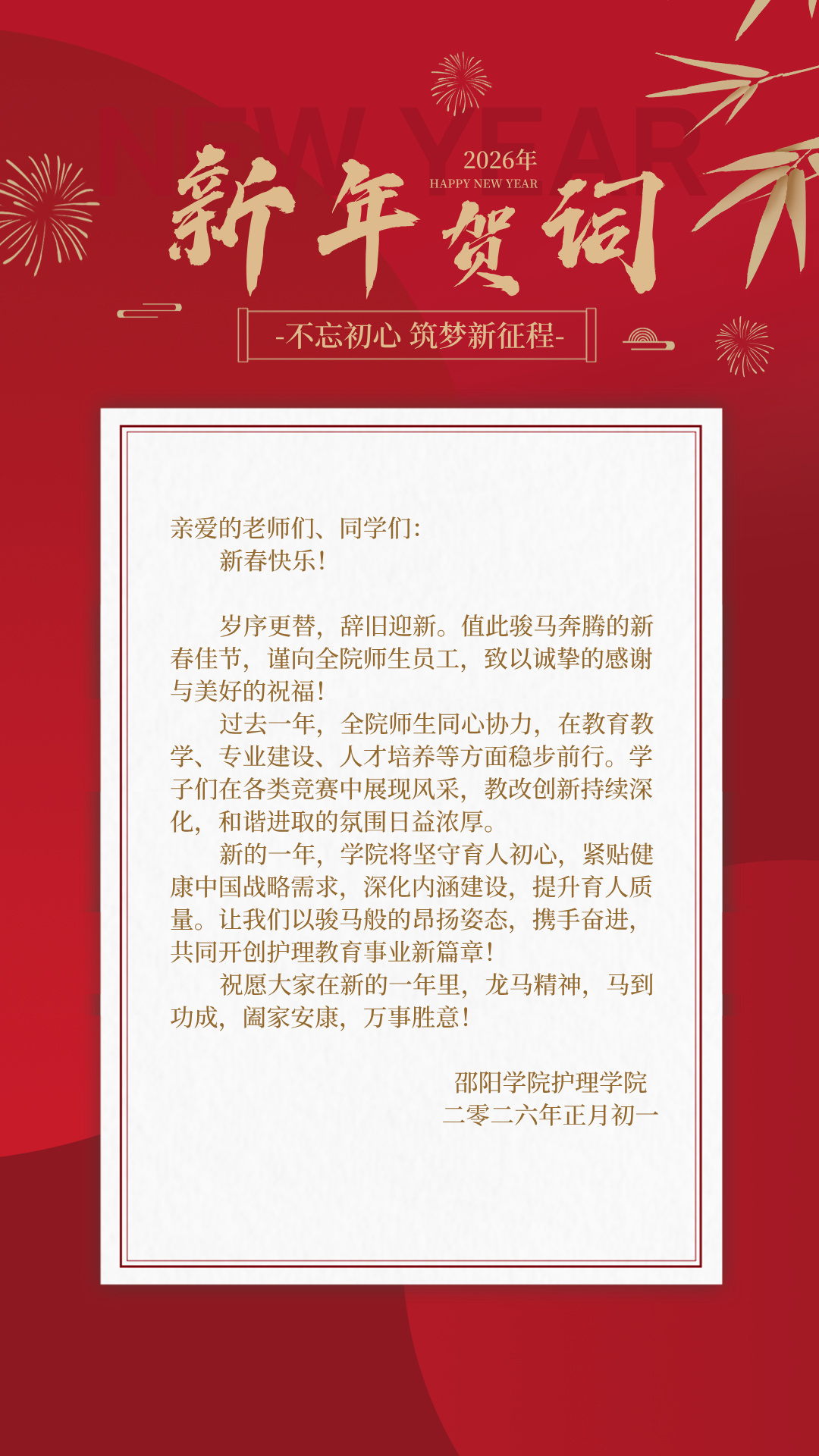 邵阳学院护理学院2026年新春贺辞