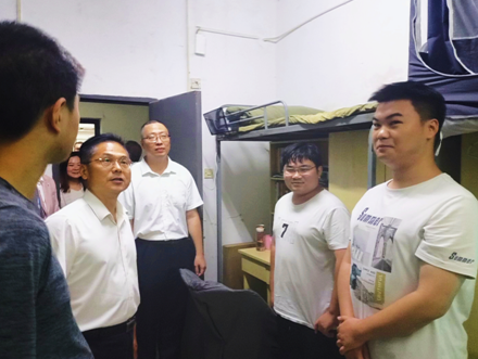 校长一行先后走访泮水4栋、5栋、乐山16栋,重点关切询问同学们的学习适应进度、日常作息保障等情况,并多次步入宿舍各区域,细致核查居住环境条件与基础设施配备状况。针对同学们集中反馈的寝室热水供应不足、快递服务点距离较远、部分宿舍水管渗漏等生活诉求,校长表示“同学们的生活保障需求是学校服务工作的核心重点,此类问题我们将第一时间统筹对接、推动解决。”同时,他现场叮嘱随行学院工作人员,需尽快梳理问题清单,同步反馈至学校后勤管理部门,并明确要求“对各项问题逐一跟进落实、限时反馈回应,确保同学们的合理诉求有回音、有着落”。