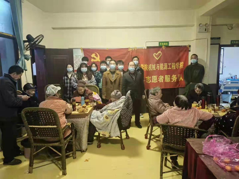 3月5日下午,机械与能源工程学院党总支书记夏冬晴、组织员唐昊龙和8名学生党员化身志愿者,赴雨溪街道雨溪社区养老院进行关切和慰问。