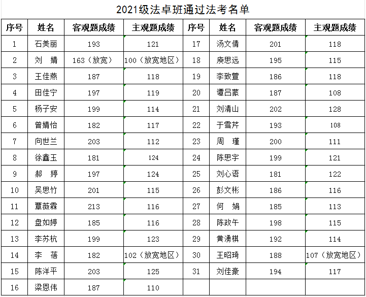 11月30日,2024年国家统一法律职业资格考试主观题成绩公布。法商学院法学专业共有49名同学顺利通过法律职业资格考试,整体通过率为41.2%,创该项考试改革以来我院最高通过记录,其中,2021级法学卓越班63人报名,班级客观题通过率为65.1%,整体通过率为49.2%,法学班56人报名,班级客观题通过率为59%,整体通过率为32.1%(名单附后)。