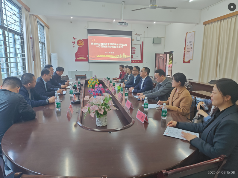 时间:2025-04-09为进一步推进院所合作,4月8日下午,湖南湘誉律师事务所刘谋煌主任一行来学院就产学研创深度合作进行座谈交流。学院院长郑爱民、党总支书记张先友,副院长胡长云、王周火及学校党政办张强波参加会议,会议由王周火主持。