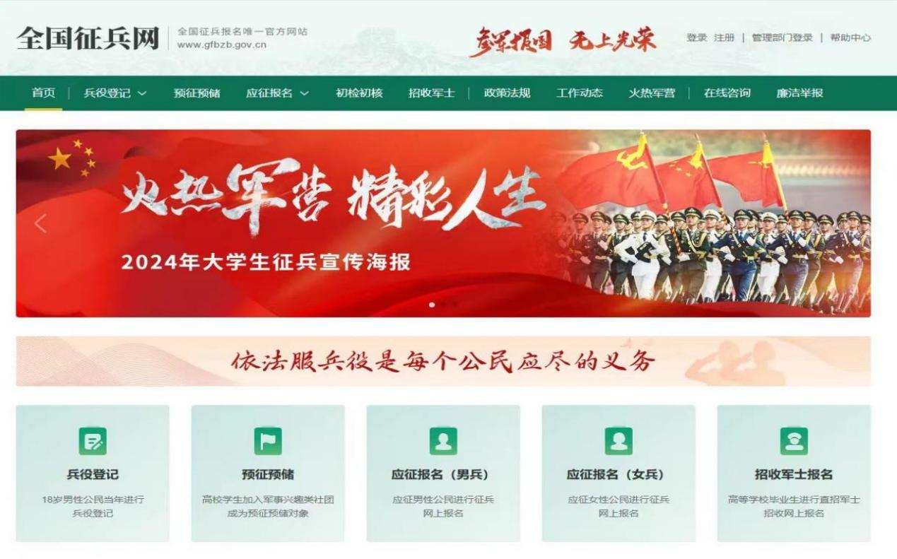 全国征兵网(https://www.gfbzb.gov.cn/)是唯一官方报名平台,也可关注“湖南征兵”微信公众号,通过底部菜单栏“应征报名”入口快捷操作。