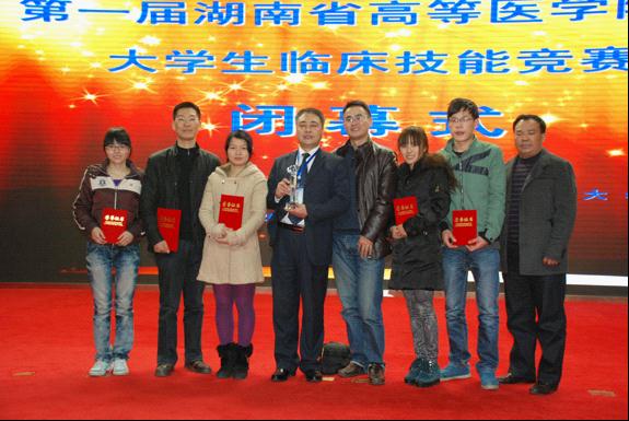 中南大学湘雅二医院党委书记周智广教授为我校颁发了奖杯和获奖证书,高教处唐利斌处长对我校所获得的优异成绩给予了高度称赞。