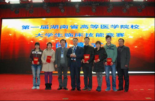 12月9日,第一届湖南省高等医学院校大学生临床技能竞赛在中南大学湘雅二医院举行。来自中南大学、湖南中医药大学、南华大学等省内10所本(专)科高等医学院校临床医学专业实习阶段的13支参赛队伍进行了为期一天的技能大比拼。经过激烈角逐,由张艳妮、毛淑贞、杨辉庭、张慧君4位同学组成的我校代表队力挫群雄获一等奖。