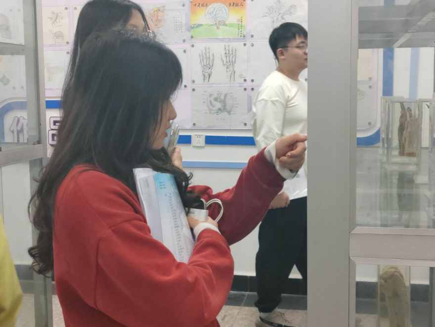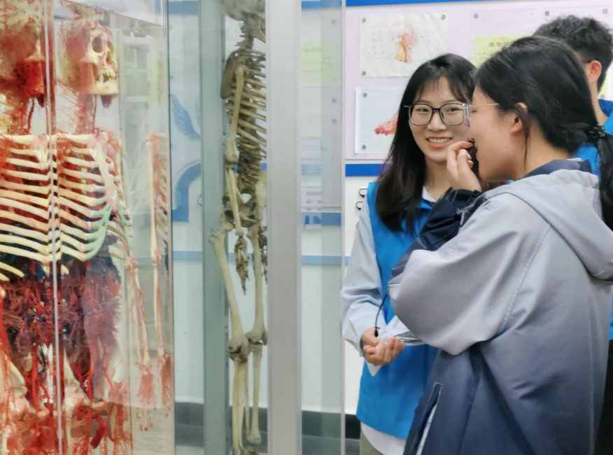 活动现场,科普讲师们以热情的态度和精准的科普技能为新同学们讲解标本馆内人体标本的解剖结构和蕴含的医学知识,通过互动提问、情景设置、别开生面的沉浸式体验提高同学们对人体的了解,感受人体科学的魅力。活动现场反响热烈,同学们就感兴趣的问题与讲师们进行了积极地交流与探讨。