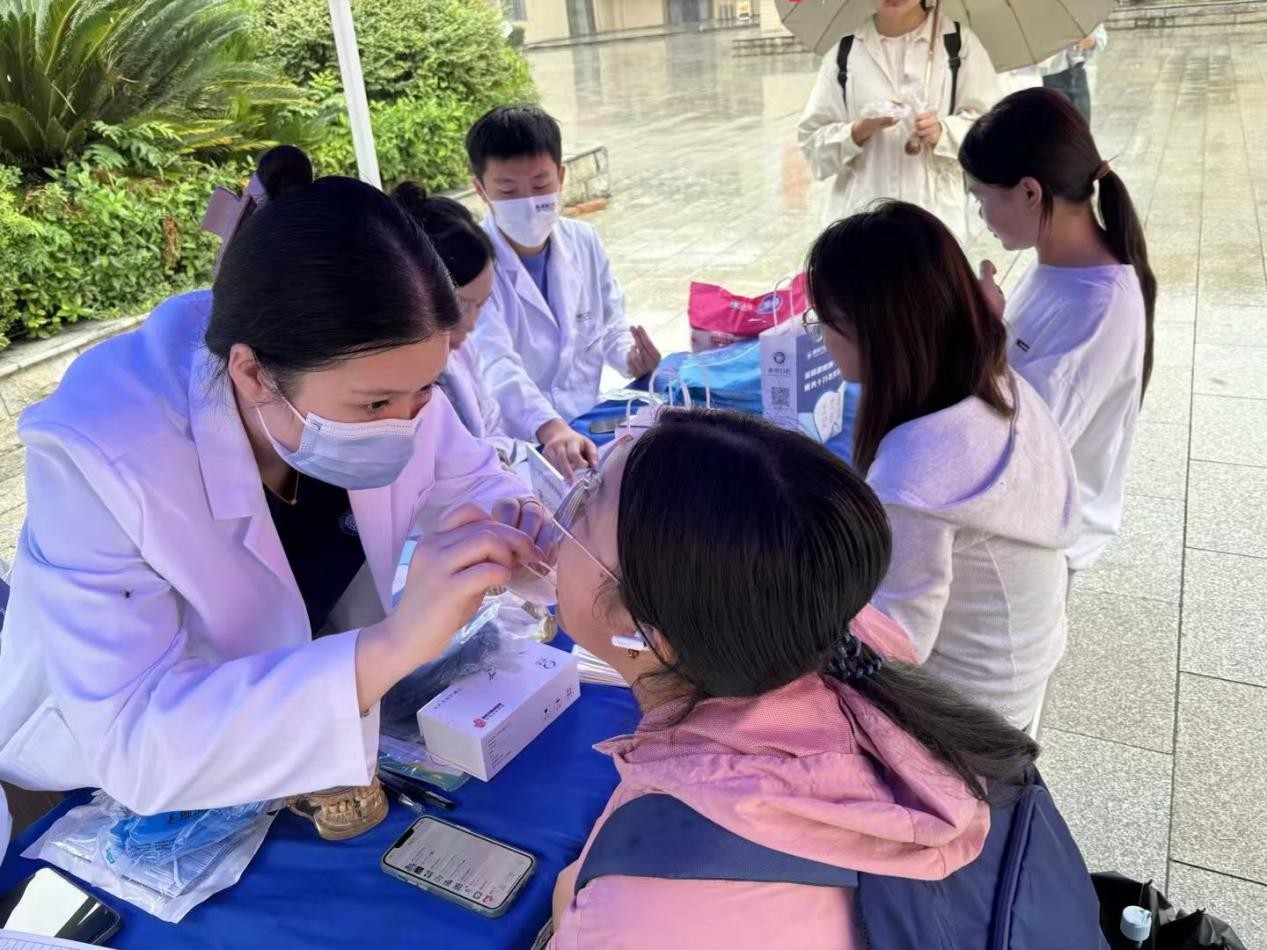 活动在梅子井校区宣誓碑前和留香食堂外分别设立宣传点,通过发放宣传册、免费口腔检查、牙齿模型演示等多种形式,面向全校学生普及口腔健康知识。活动现场气氛热烈,志愿者们生动讲解正确的刷牙方法,以及龋齿、牙周病、智齿冠周炎等常见口腔问题的预防与治疗知识。来自康丽口腔的专业医生耐心为学生进行免费口腔检查,并提供个性化的健康建议,受到了同学们的广泛欢迎。协会指导老师李艳伟教授亲临现场指导,确保了活动的专业性和实效性。