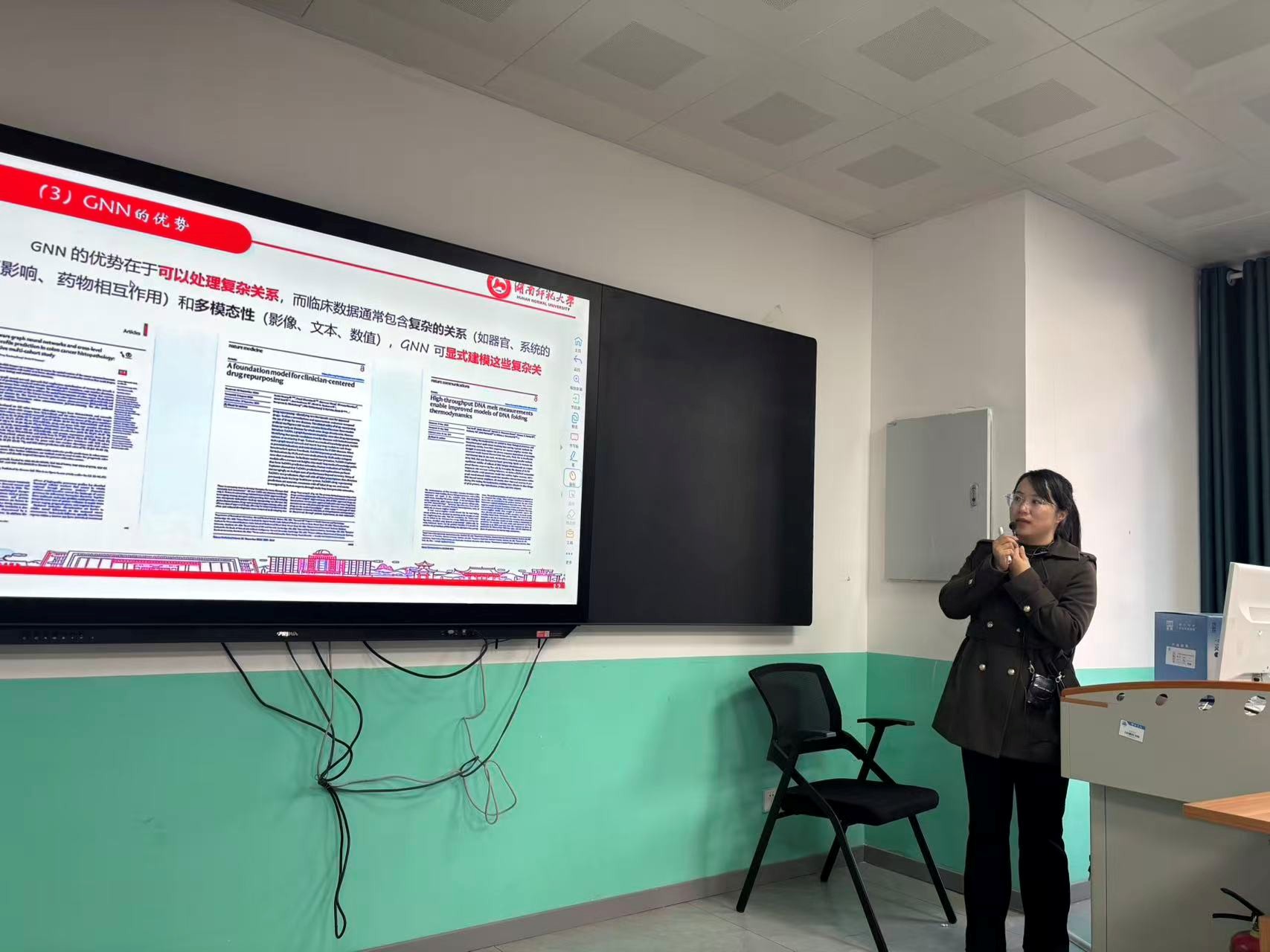 针对“人工智能技术在医学教学与科研中的应用”,刘圆圆老师分享了AI技术在虚拟仿真教学、医学影像分析、疾病预测模型构建等领域的经验。她指出,AI技术能够有效弥补传统医学教学中“实践操作机会有限、高危病例接触不足”的短板,为医教协同与产学研融合提供新动能。