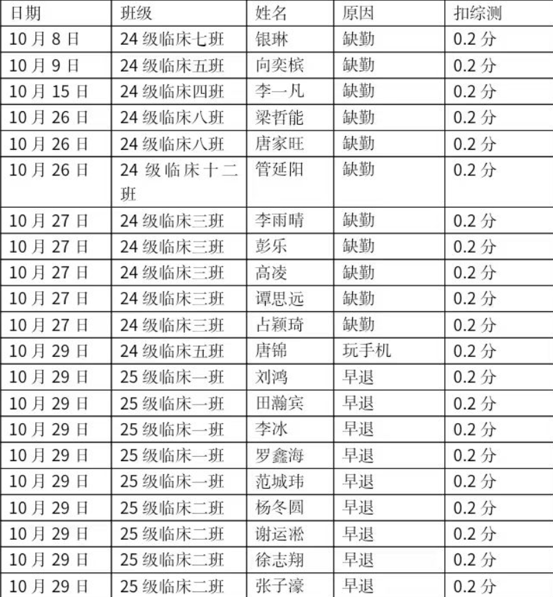 普爱医学院学生工作建设情况通报 2025年10月份学生工作检查情况 根据学校、学工处、普爱医学院学生管理制度要求,普爱医学院团学组织各部于2025年10月对各班早晚自习、上课情况进行多次检查,现将工作情况通报如下: