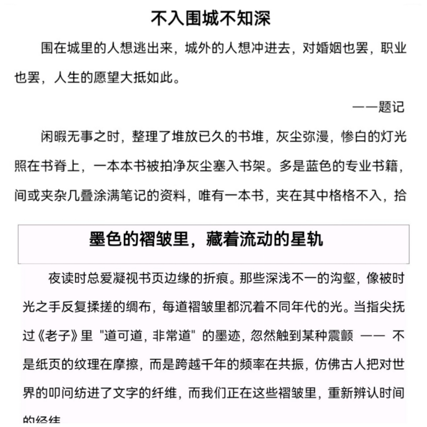 十月书香漫,杏林墨韵扬。科技创业与就业服务部与各班宣传委员携手播撒阅读的种子,在校园里掀起一股静读深思的风潮。参与活动的同学们以文字为舟,以感悟为帆,在经典的海洋中探寻智慧的光亮。他们以细腻的笔触,书写对文学世界的独到理解,让思想的火花在字里行间悄然绽放;他们用真实的情感将“小我”融入文章,开辟富有创意的书写路线,展现出阅读经典书籍所带来的精神成长。