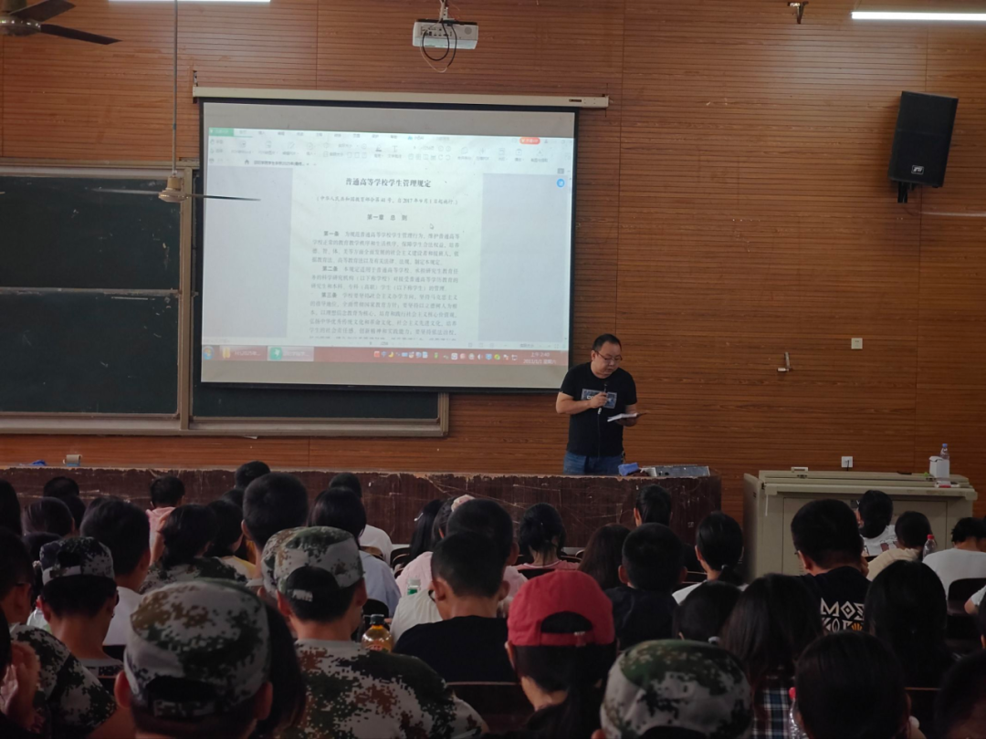 紧接着在校规校纪讲授中,艾陈老师介绍到“校纪校规是法律法规在学生时代的另一种体现,大家要时刻铭记,务必遵守。”艾老师向大家展示《邵阳学院学生管理办法》和颁发了《邵阳学院学生手册》并详细解读了相关的校纪校规,一条一条为大家仔细解读其目的和内容。大家频频点头对此表示赞同,同时在老师的解说当中,在大家的目光中,一条一条校纪校规如丝带般流入大家心间。校纪校规框定的不仅仅是法律法规的内涵,更是学生准则的底线,是身为学生的道德红线。