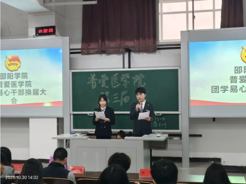 为进一步强化学院组织建设,提升组织活力,保障团学易心工作的平稳过渡与高效衔接,10月30日下午2:30,普爱医学院于梅子井济世楼南309隆重举行“第三届普爱医学院团学易心干部换届大会”,党总支副书记贺朝霞和全体辅导员出席会议,全体学生干部干事齐聚一堂,共同推进学院团学工作交接,明确“健康+”工作室年度工作重点。