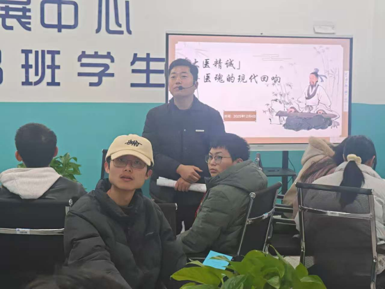 2025 年 12 月 4 日 ,普爱医学院《大医精诚》读书分享会在学校易班发展中心顺利开展。本次活动以 “千年医魂的现代回响” 为主题,由姚利林老师主讲,贺朝霞副书记、辅导员戴小超协同参与,旨在通过中医经典解读与医史故事结合,让 “精于术、诚于心” 的医德理念融入医学生成长,为其未来践行医疗使命筑牢思想根基。