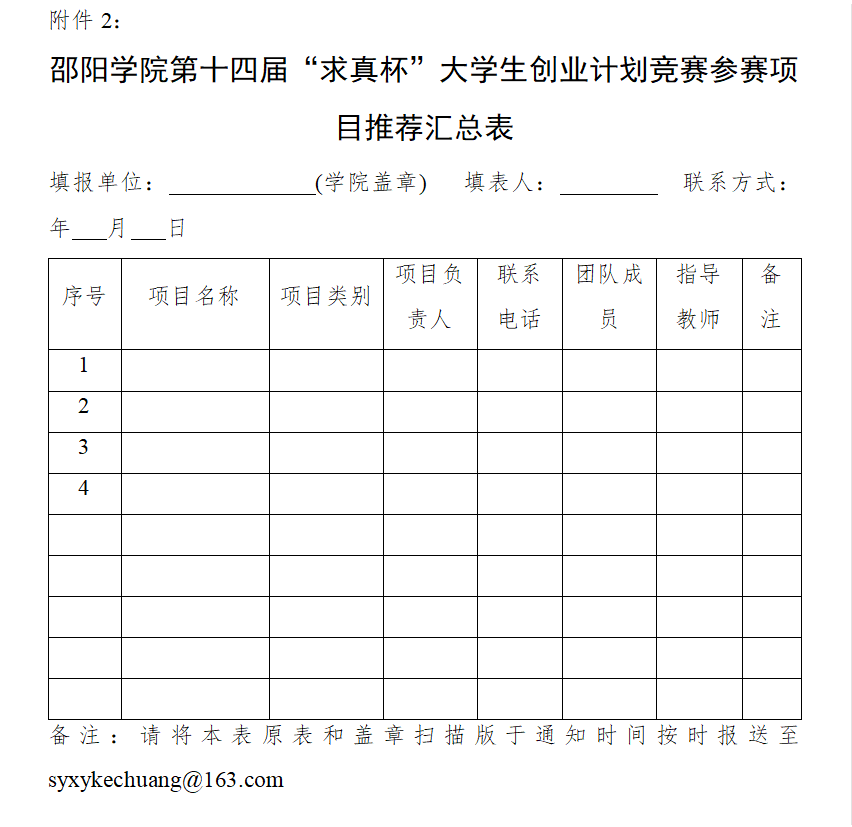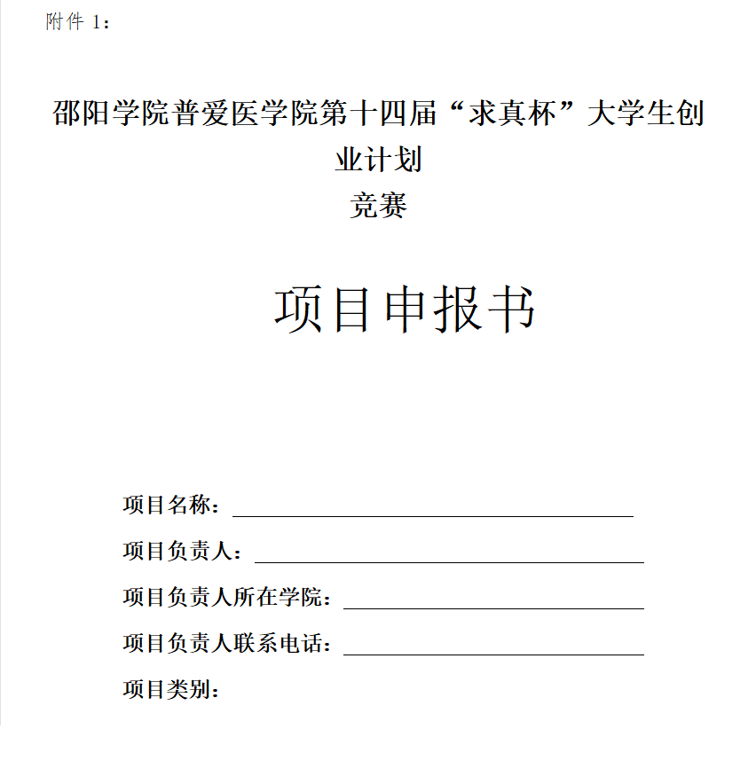1. 邵阳学院普爱医学院第十四届“求真杯”大学生创业计划竞赛参赛项目申报表 2. 邵阳学院普爱医学院第十四届“求真杯”大学生创业计划竞赛参赛项目推荐汇总表