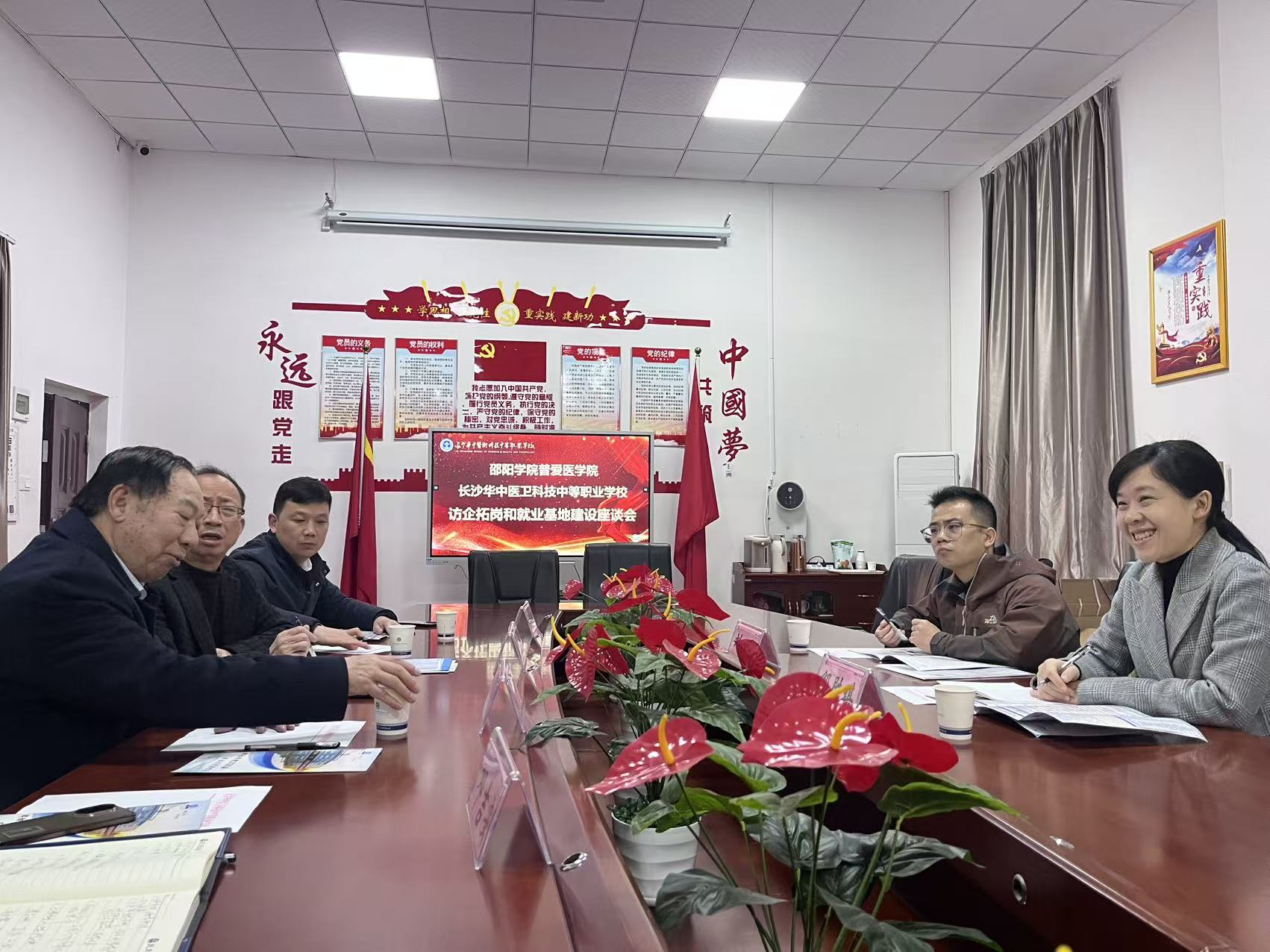 在随后召开的座谈会上,长沙华中医卫科技中等职业学校相关负责人对邵阳学院普爱医学院一行的到来表示欢迎,并围绕学校发展历程、办学特色及当前师资队伍需求作了详细介绍。校方表示,随着办学规模持续扩大,对具备扎实医学背景和高层次学历的人才需求日益迫切,期待吸纳更多优秀本科毕业生充实教师队伍与管理团队。