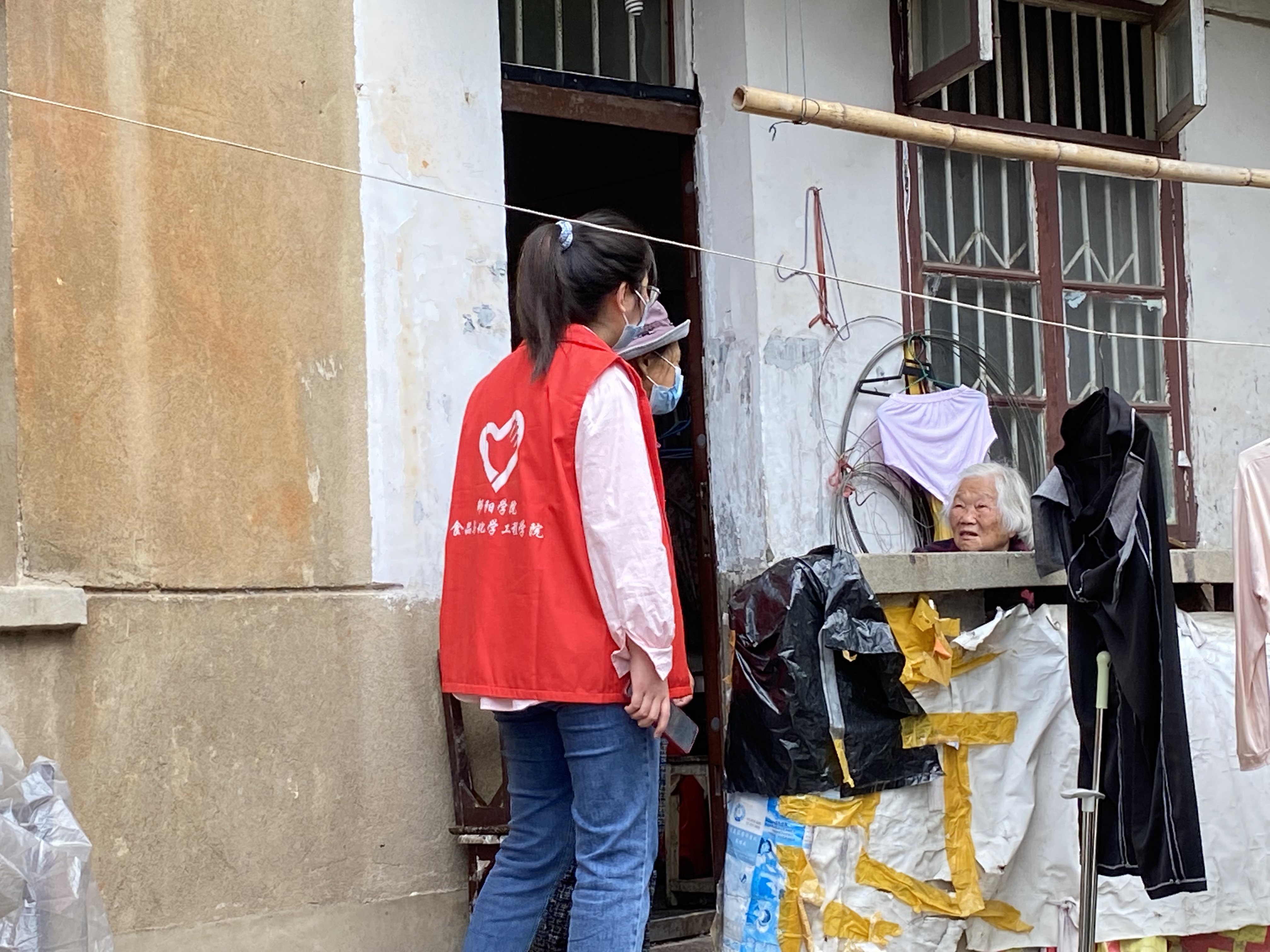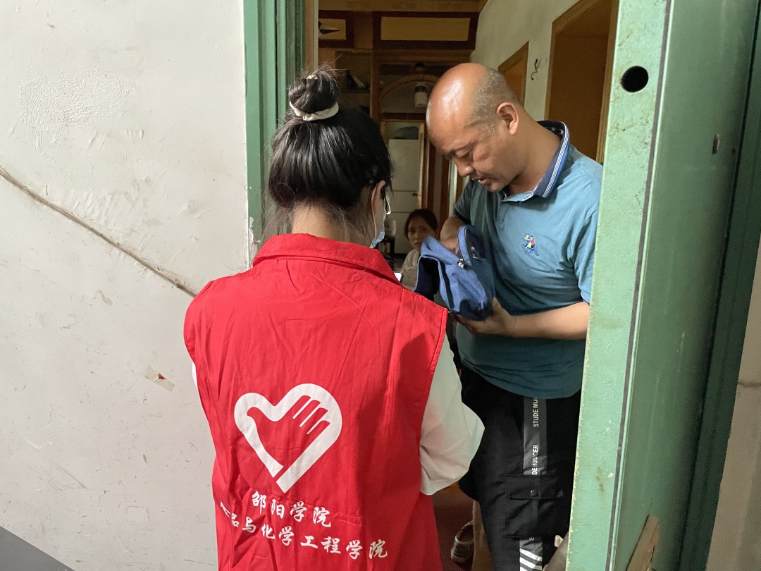 “您好,我们是食品与化学工程学院的党员志愿者,请问您收到今天进行第五轮核酸检测的通知了吗?”“请问您和您的家人目前健康码是否正常?”