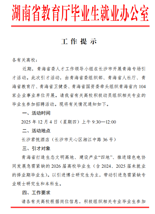 - 青海“校园引才”专场招聘 2025-12-02