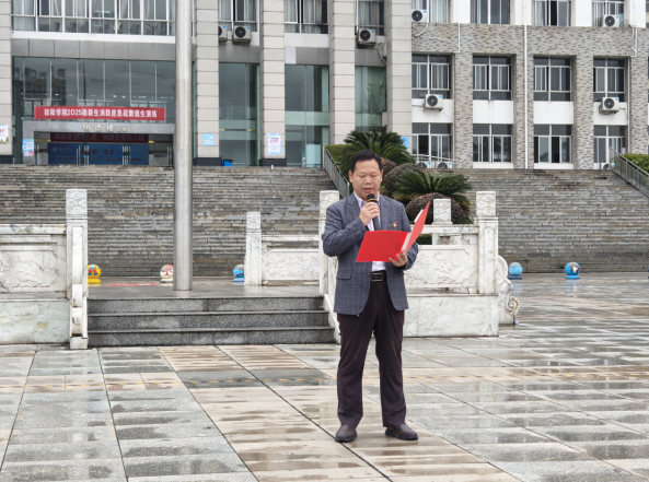 仪式上,马克思主义学院党总支书记易佑斌发表讲话。他首先对2025级思想政治教育专业新生表示热烈欢迎,欢迎他们加入马院这个追求真理、信仰坚定的大家庭。易书记指出,思想政治教育专业不仅是一个专业,更是一份沉甸甸的责任与光荣使命,关系到培养什么人、怎样培养人、为谁培养人这一根本问题。站在国旗下,新生们应深刻认识到,从此刻起,人生将与党和国家事业发展同向同行,与中华民族伟大复兴同频共振。