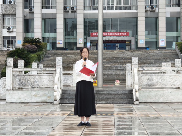 随后,廖悦锦作为学生代表发言。她以“读书·健体·爱国,做新时代有为大学生”为主题,结合自身经历与诸多杰出人物事例,分享了对大学生活的感悟。她建议新生读书思考,以塑造独立灵魂、明确目标;强健体格,为未来储备能量;爱国自信,扎根理想,在大学新起点沉心积累,待毕业时绽放光彩,以青春担当为国家和社会贡献力量。