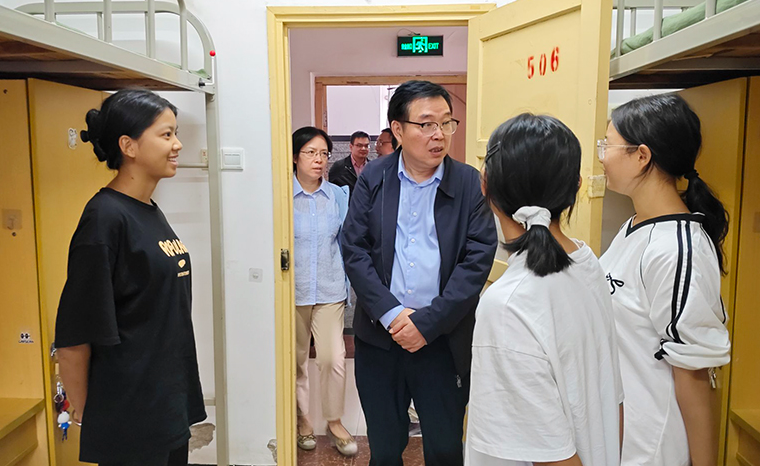 走访期间,宁立伟书记与学院领导老师们一同走进新生宿舍,与同学们亲切交谈。“从哪里来?”“饮食是否习惯?”“生活上有没有什么不方便?”“对大学课程感觉如何?”……一句句细致的询问,传递出学校与学院对新同学的深切关怀。宁立伟书记强调,“邵院是全体师生共同的家”,他鼓励同学们积极融入校园生活,主动反映学习与生活中遇到的困难,并为学校发展建言献策。他特别叮嘱新生们要尽快完成角色转换,在潜心学业的同时,注重身心健康发展,保持与师长、家人的密切联系。