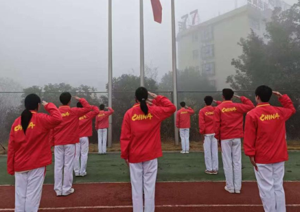当全体体育学院学生纷纷到操场时,仪仗队的队员已身着统一服装,身姿挺拨,精神抖擞地列队待命。随着雄壮的《义勇军进行曲》奏响,国旗冉冉升起,师生们肃立致敬,爱国之情在晨光中激荡,信仰之光在国旗下闪耀。