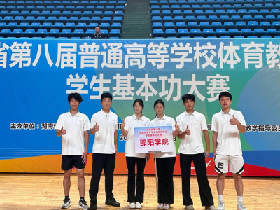2025年6月19日,湖南省普通高校第八届体育教育专业基本功大赛在湖南师范大学闭幕。邵阳学院代表队在体育学院院长陈日升,副院长刘飞舟、谭晓伟及其他任课教师的带领下获得基础理论知识与教学技能类三等奖。