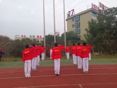 晨光裹着微凉的风漫过新操场,2025年10月27日早上6点体育学院2025级辅导员罗旺、2023级辅导员禹航、2024级辅导员龚鹰、2022级辅导员罗雨婷、2025级社会体育指导与管理班主任刘君玲以及体育学院全体同学齐聚新操场,举行每周一次的升旗仪式。