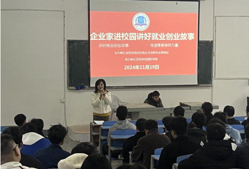 刘丽华院长在致辞中表示,企业家走进校园讲好就业创业故事活动,是校企文化互动和融通的有益实践探索。