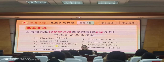 为夯实英语师范生专业技能、以赛促学赋能职业发展,12月15日,外国语学院组织开展英语师范生微格教学实训与竞赛经验分享会。本次分享会特邀我院今年在国家级、省级师范生技能竞赛中斩获佳绩的 23 级学子林雅琦、符邵盼担任主讲人,学院 24 级全体师范生参会,外国语学院副院长蒋芬亲自主持活动并现场指导。