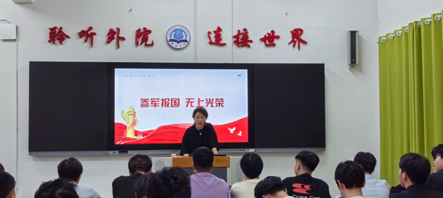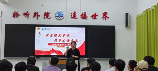 2025年毕业生征兵宣传工作已全面展开。为响应国家征兵号召,激发毕业生参军报国热情,外国语学院于2025年5月15日晚19时30分在李子园校区办公楼701成功举办毕业生征兵动员大会。外国语学院武装专干、21级辅导员刘洋老师受邀出席并作政策解读。