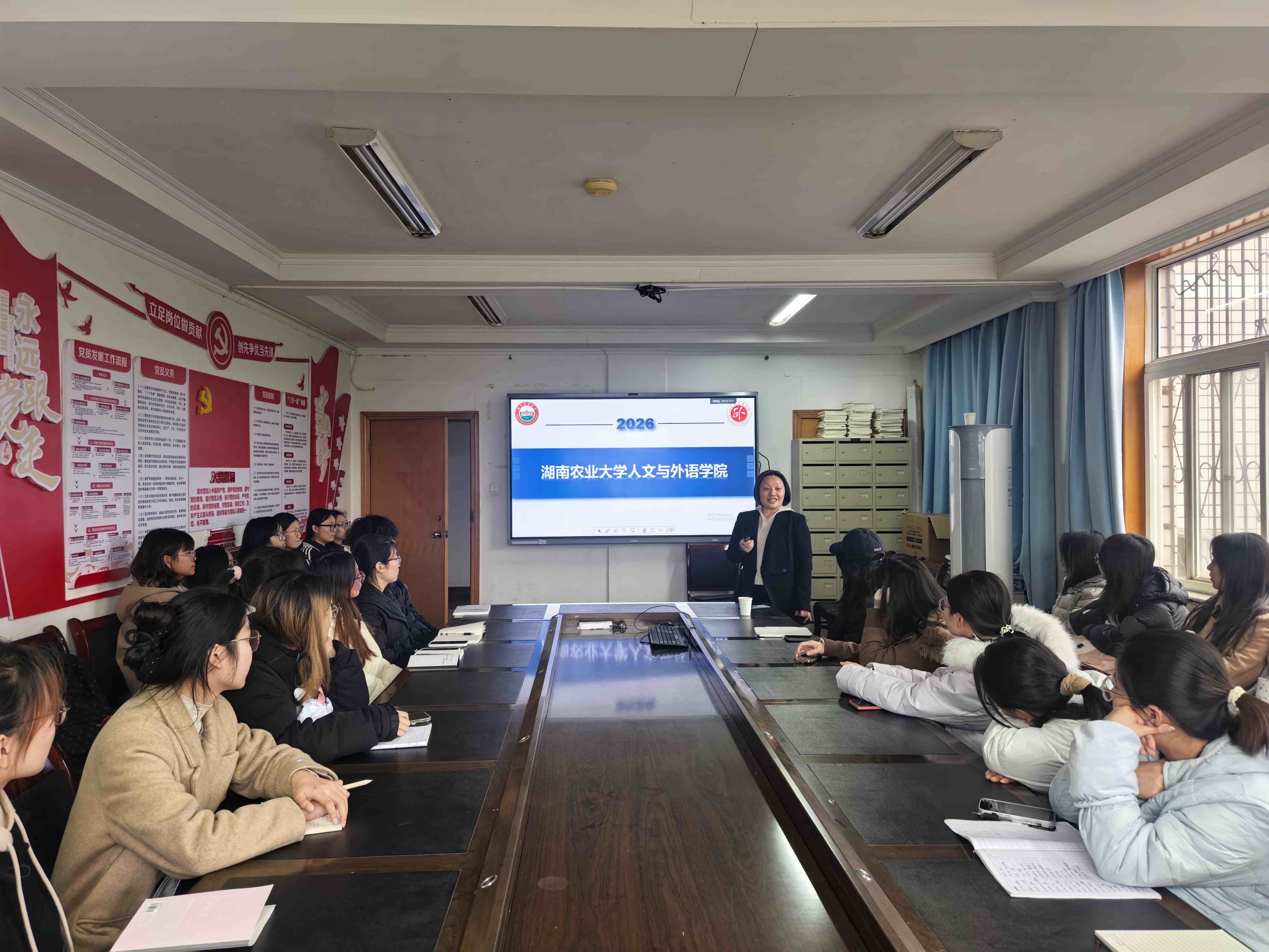 为帮助我院学子明晰考研方向、破解备考困惑,3月19日下午,湖南农业大学人文与外国语学院党委委员、副院长范丽群莅临我院,开展考研专题宣讲会。我院副院长蒋芬、27届毕业生辅导员唐丽军及有考研意向的学子到场参会聆听指导。