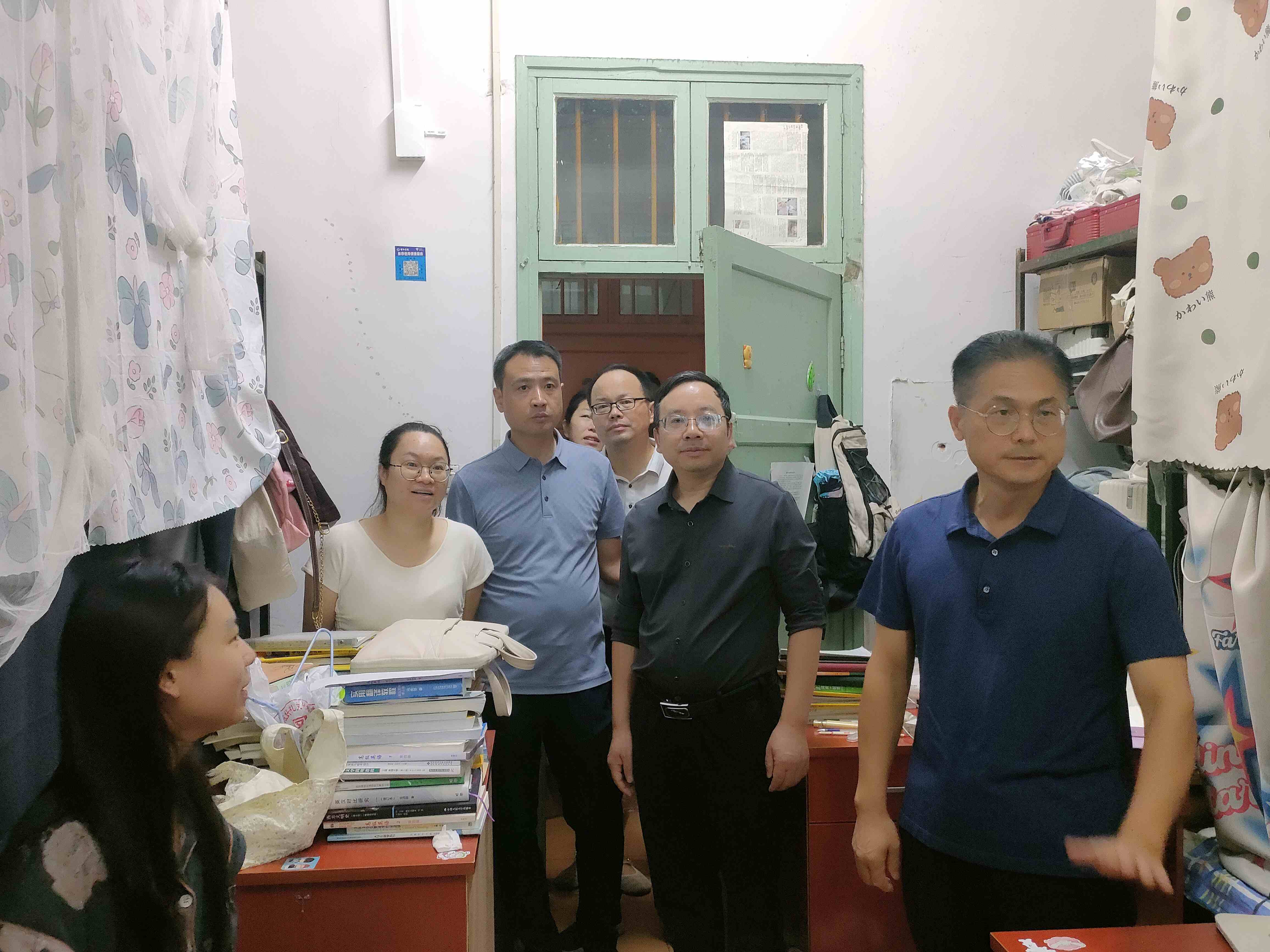 校长一行先后走访了桃李公寓7栋、2栋、3栋,重点检查7栋洗漱间宿舍卫生整洁度、2栋阳台的安全、3栋宿舍防雨和浴室情况。在走访中,校长与学院总支书记李佑丰、副书记夏琳钦详细交谈,询问了宿舍存在问题、安全隐患及对宿舍整改的意见建议,对部分宿舍整洁有序的环境给予肯定。