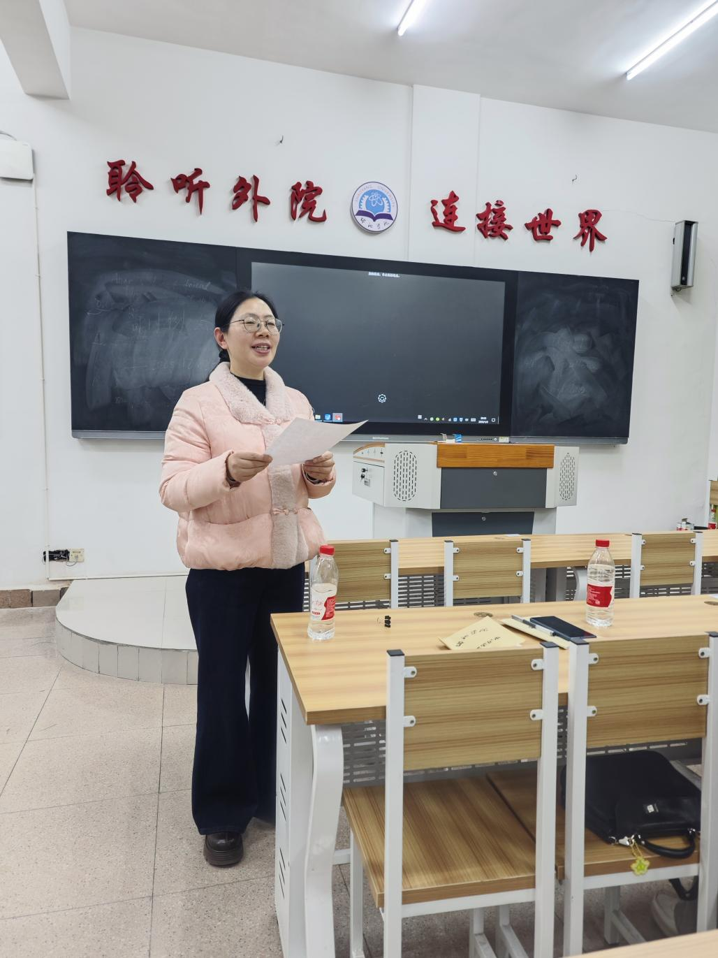 2026年1月8日,外国语学院于李子园校区办公楼701会议室举行2026年青年教师教学竞赛。学院副院长蒋芬出席本次活动,各教研室教师到场为我院参赛教师加油助阵。