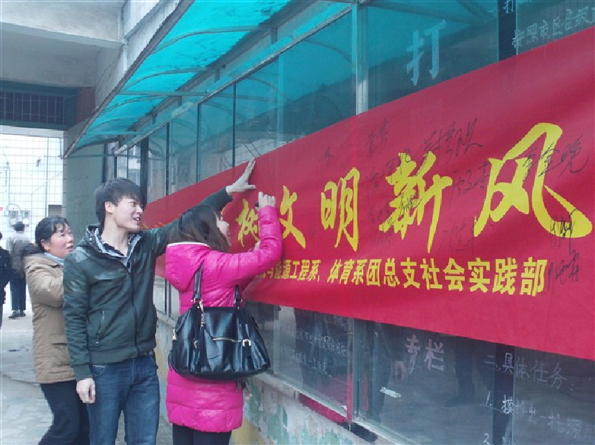 3月11日,我系与体育系、电气工程系、机械与能源系的社会实践部联合大祥区城西办事处组织的志愿者共150余人,在大祥区樟树垅社区开展文艺汇演、慰问贫困户、义务家教、义务家电维修、义务清扫、万人签名志愿学雷锋等活动。