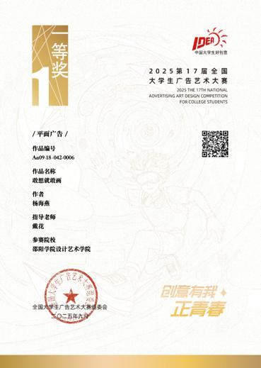 (图为第17届全国大学生广告艺术大赛邵阳学院学子一等奖获奖证书汇总)