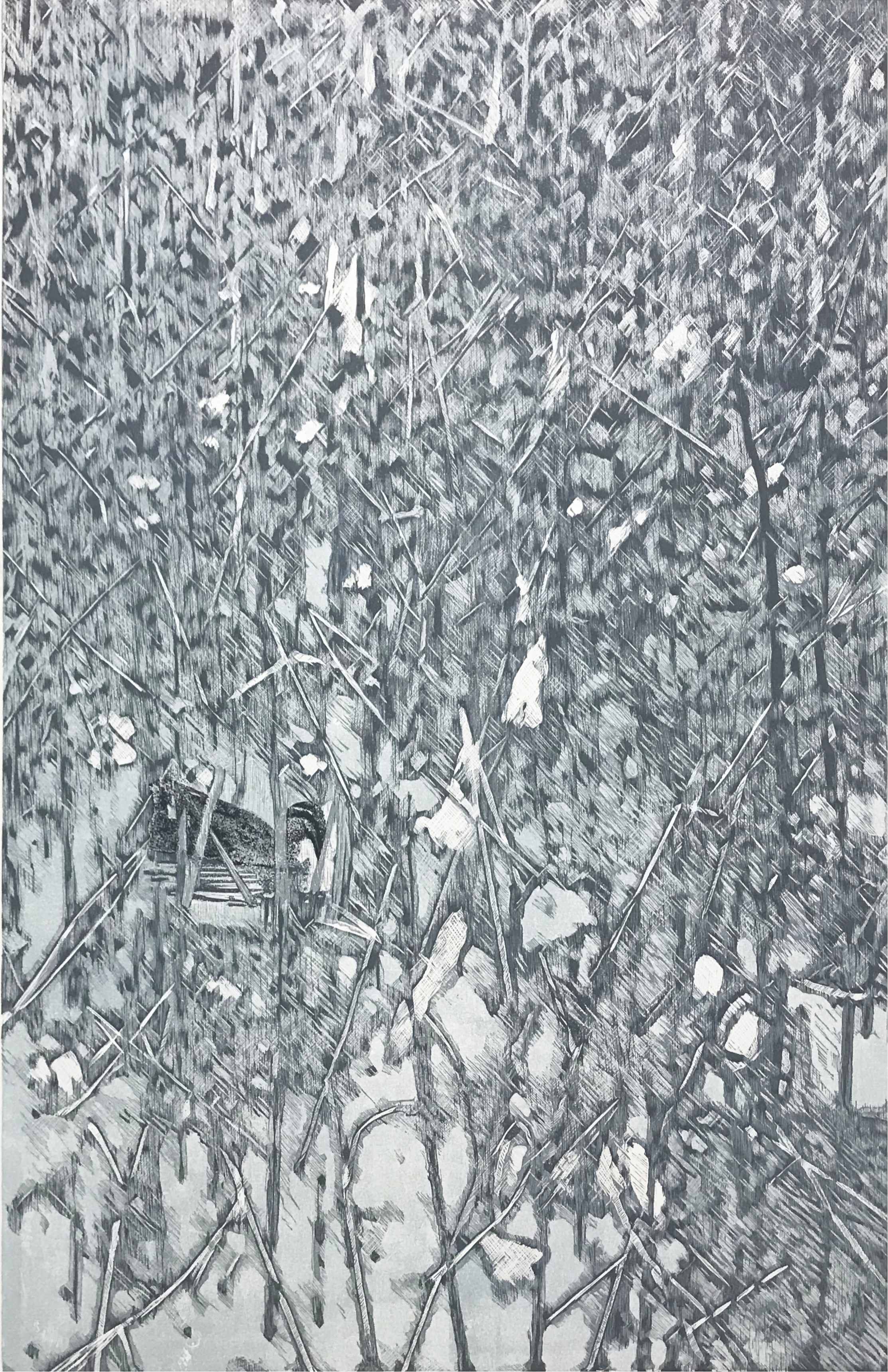 《一缕忆白追霜月 》 63cm×94cm 水印木刻