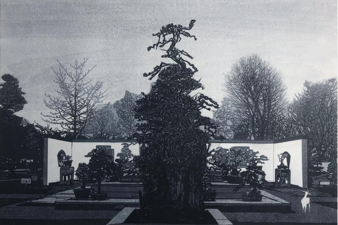 “他山”——是砥砺,亦是滋养。自母校启程,鹏城深圳以其特有的时代脉搏与开放气度,成为业平先生艺术生命的重要扎根沃土。他的艺术足迹,遍及自然家园与社会现场,其目光,既凝视时代的波澜,也静观内心的微光。这一切,早已内化为其艺术语言中兼容并包的视野、理性清晰的架构与大胆探索的勇气。观业平先生之作,无论是获誉全国的精品力作,还是沉淀心性的日常探索,总有一种超逸淡远之气萦绕其间,庄重理性之下,是对传统文化的温柔守望,对生命本真的不懈创寻。他的刀法木痕间,既有西方绘画理念的严谨构成,更流淌着中国传统文化中诗意、空灵、飘逸的审美基因。书法篆刻的功力、文学修养的浸润,使其画面超越了技术的层面,营造出细腻敏感、引人共鸣的情感氛围。