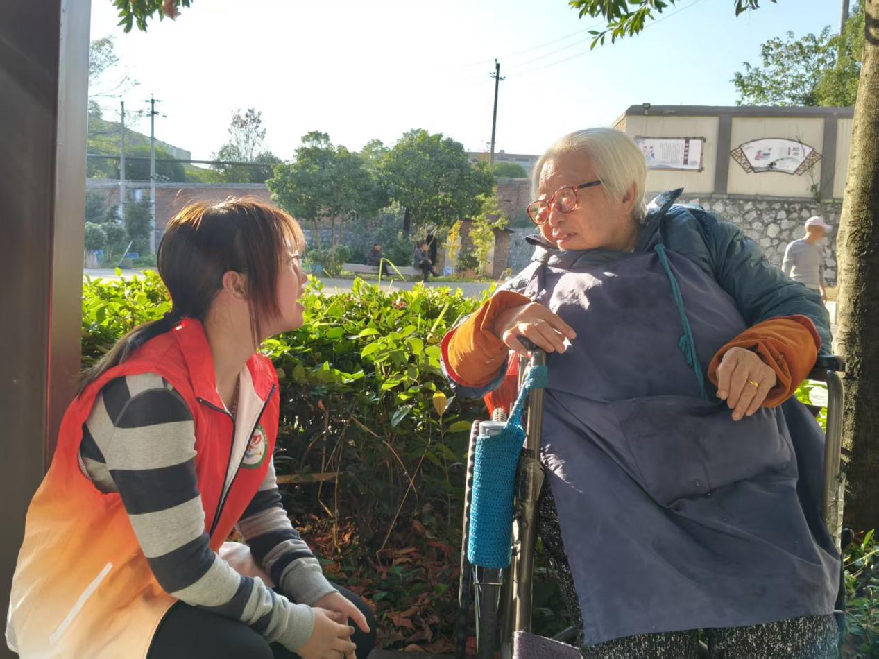 (图为志愿者正在颐康养老服务中心与老人交谈)