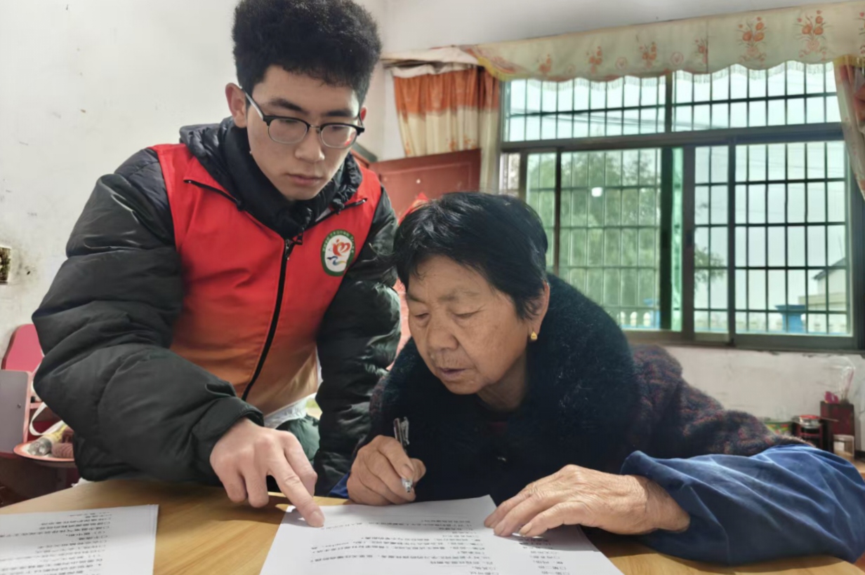 活动当日,5名志愿者走进翁家社区,与社区老人面对面、心贴心交流。志愿者们耐心倾听老年人讲述其生活日常与心声,陪老人唠家常,为独居、孤寡老人清扫庭院,整理内务;同时,志愿者们结合学院此前寒假“返家乡”助老志愿服务的调研经验,开展相关问卷填写工作,了解老年人的文化需求,探索通过漫画图解、慢语速动画、口语化手册等易理解、易传播、易记忆的普惠产品,创新打造“时政热词解读+养老政策科普+反诈知识宣传”三合一适老化视觉解读体系,助力老年人跨越数字鸿沟与认知鸿沟。活动过程中,志愿者们还用心捕捉服务中的温暖瞬间,用镜头定格志愿风采与温情画面,并为老人们送上精心准备的礼品,让老人们在春日里感受到浓浓的关怀。