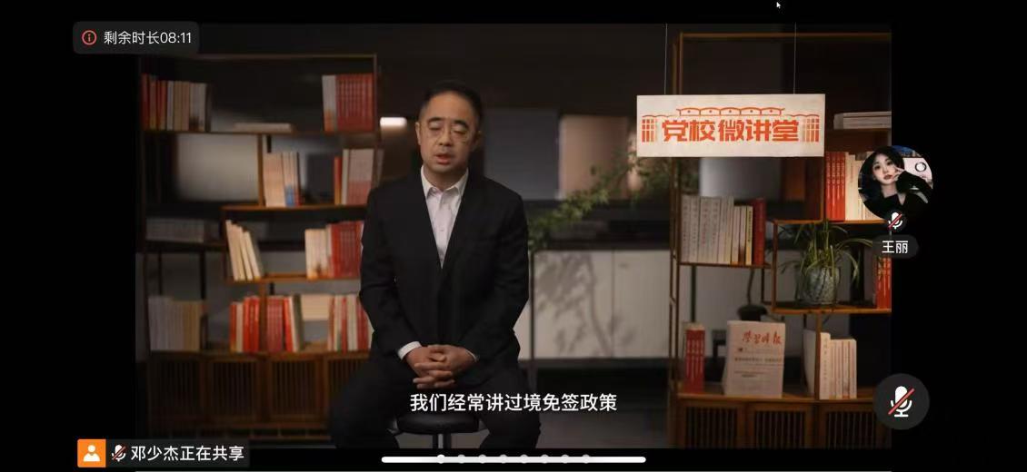 会议第三项,全体与会人员在线集中观看了《理响中国,党校微讲堂(第二季)》第三讲“如何应对现代化进程中可能遇到的风险和挑战”专题视频。讲座深入浅出的分析,增强了大家对国家发展征程中复杂性艰巨性的认识,提升了忧患意识和斗争本领。