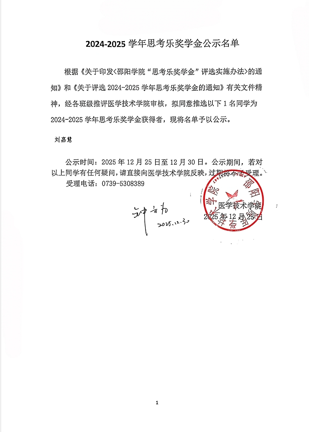2024-2025学年思考乐奖学金公示名单