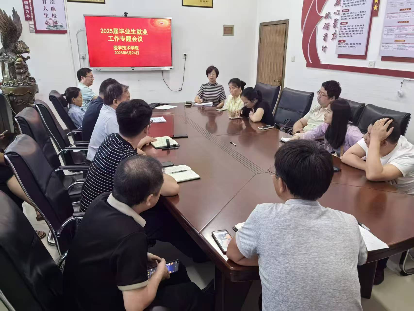 2025年6月24日,医学技术学院召开2025届毕业生就业工作专题会议,学院相关教职工参会。会议聚焦2025届毕业生就业工作的重点难点,深入分析当前就业形势,细化就业工作举措,明确后续工作责任与推进方向,旨在全力保障毕业生就业工作提质增效。