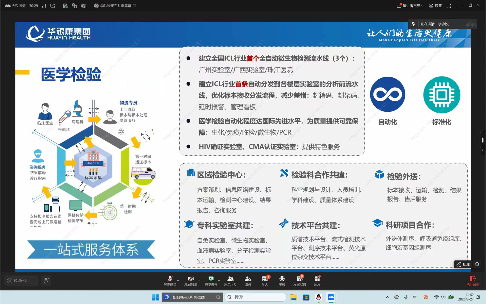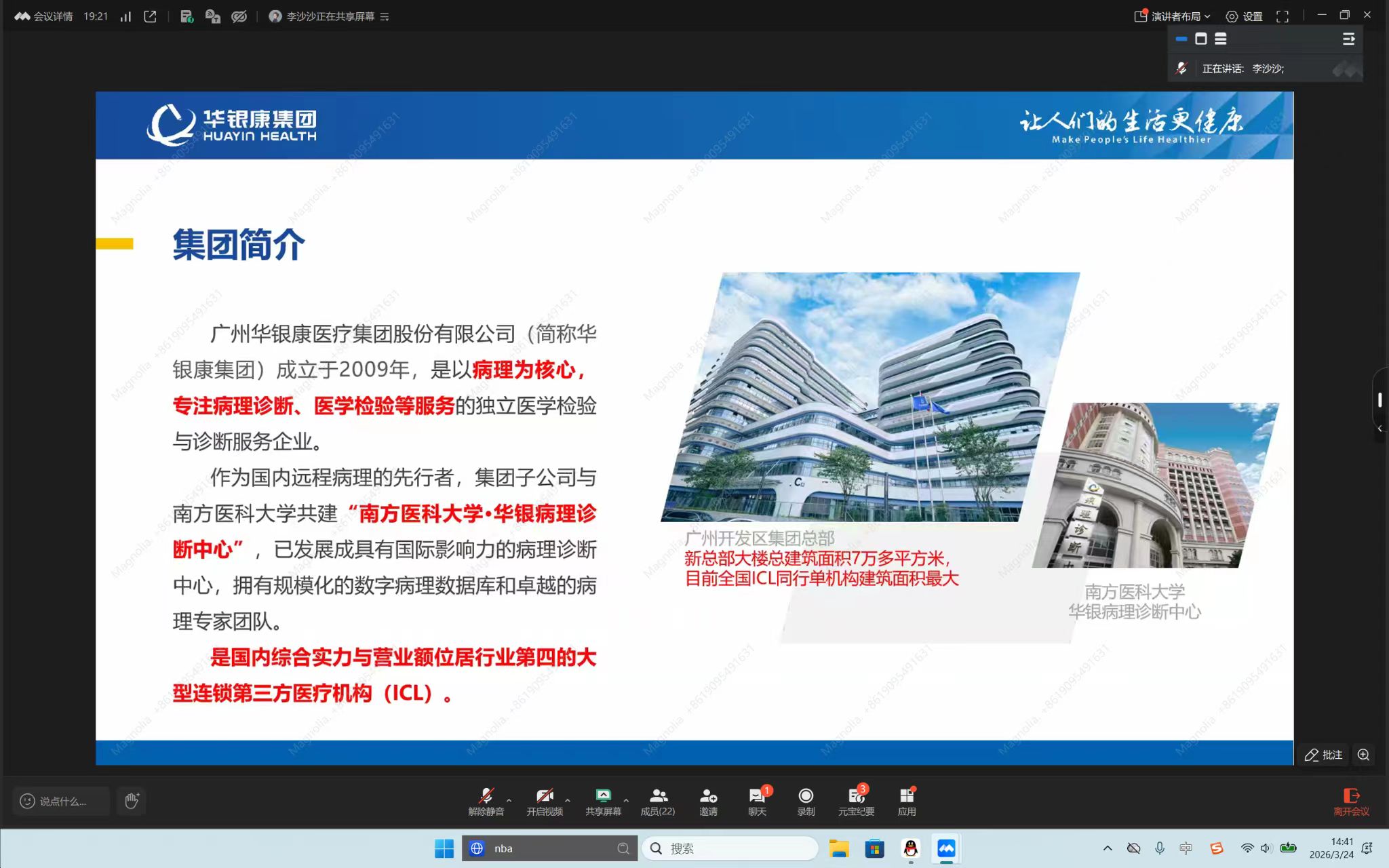 宣讲会上,华银康集团校招负责人李莎莎老师详细介绍其公司背景、行业地位、核心优势、服务技术以及团队风采,作为以病理为核心的第三方医学检验与诊断服务企业,该集团已在全国27个省区设置了医学实验室,依托全国实验室网络与远程病理平台,深耕医学检验、病理诊断、健康管理等领域,为学子提供广阔就业平台。