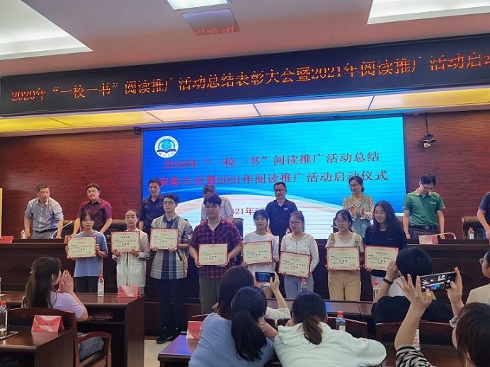 2021年5月13日,学校在七里坪一办公楼一楼报告厅举行了2020年“一校一书”阅读推广活动总结表彰大会暨2021年阅读推广活动启动仪式,与会领导为刘承智,宣传部、学生工作处、教务处、团委负责人(1人),各二级学院分管学生工作负责人、团总支副书记,学生会学习部长、读书心得获奖学生(相关部门落实),图书馆负责人及相关工作人员。大会总结了2020年“一校一书”阅读推广活动的具体情况,对各二级学院组织2020年阅读推广活动进行了评选颁奖,以及对各二级学院推选至学校的读书心得进行颁奖,对2021年阅读推广活动的具体内容进行了要求。