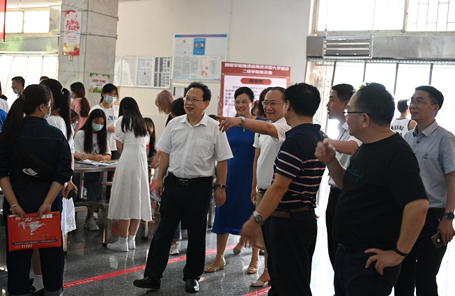 9月11日上午10点许,学校党委书记彭希林教授、校长葛金文教授、副校长赵敏丽等领导一行来到新生报到处,了解新生的报到情况、宿舍安排情况、疫情防控情况等。校、院领导对新生的到来表示热烈的欢迎,并询问新生们的家庭情况及解答他们的各种疑惑,交流气氛热烈融洽。新生及家长们真真切切感受到学校、学院领导的热情慰问与关怀。